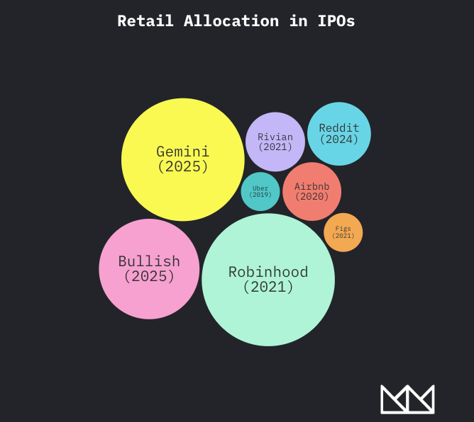 Bullish (2025) allocated 20% to the general public. The CEO said retail investors are "underestimated" and wanted to prove it.